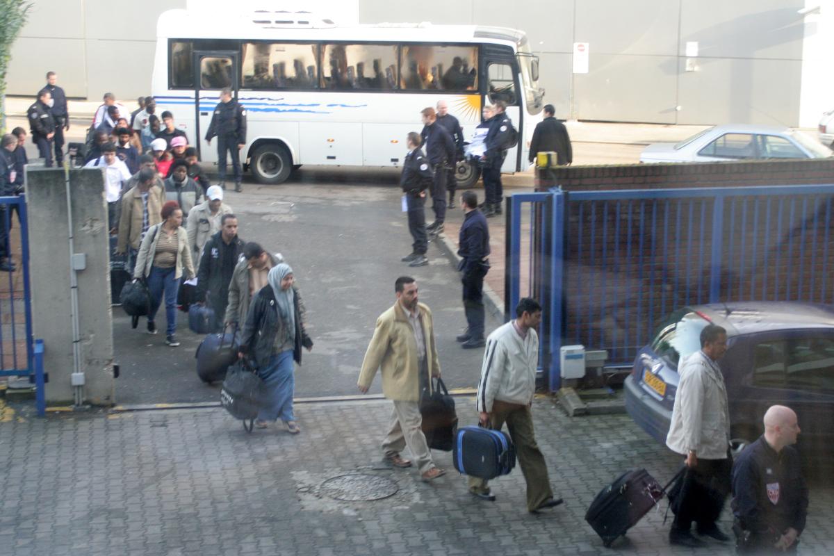 des étrangers en provenance du centre de rétention du Ménil Amelot prés de Roissy sont amenés chaque matin au tribunal de Bobigny pour être présentés au juge de la liberté et de la détention.Seront-ils libérés ou expulsés? BOBIGNY/2008/02/27/JMB