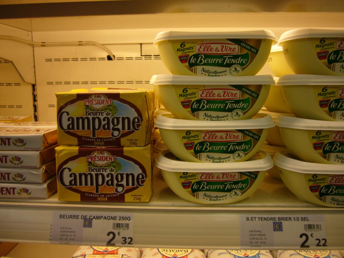 Rayon d'un supermarché Franprix, beurre Président, Elle&vire, Saint-Denis 3 mars 2008