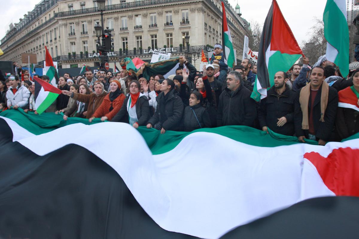 le 2 mars 2008 manifestation place de l'Opéra à Paris contre l'agression de l'armée israélienne dans la bande de Gaza qui a fait plus plusieurs dizaines de morts. La manifestation est trés encadrée par la police. PARIS/2008/03/02/JMB