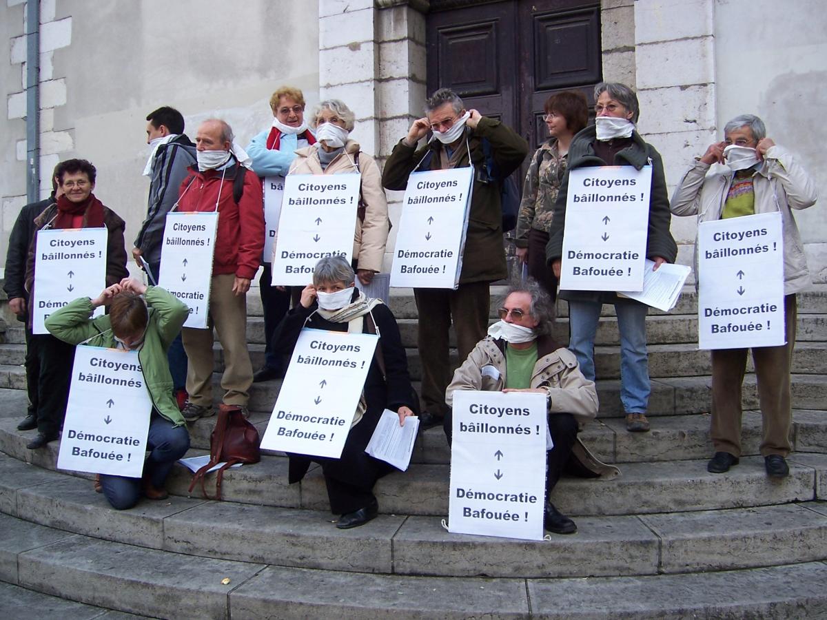 Intervention dans le centre de ville de Grenoble contre le nouveau traité européen à l'appel du Collectif regroupant localement 9 organisations dont la LCR.