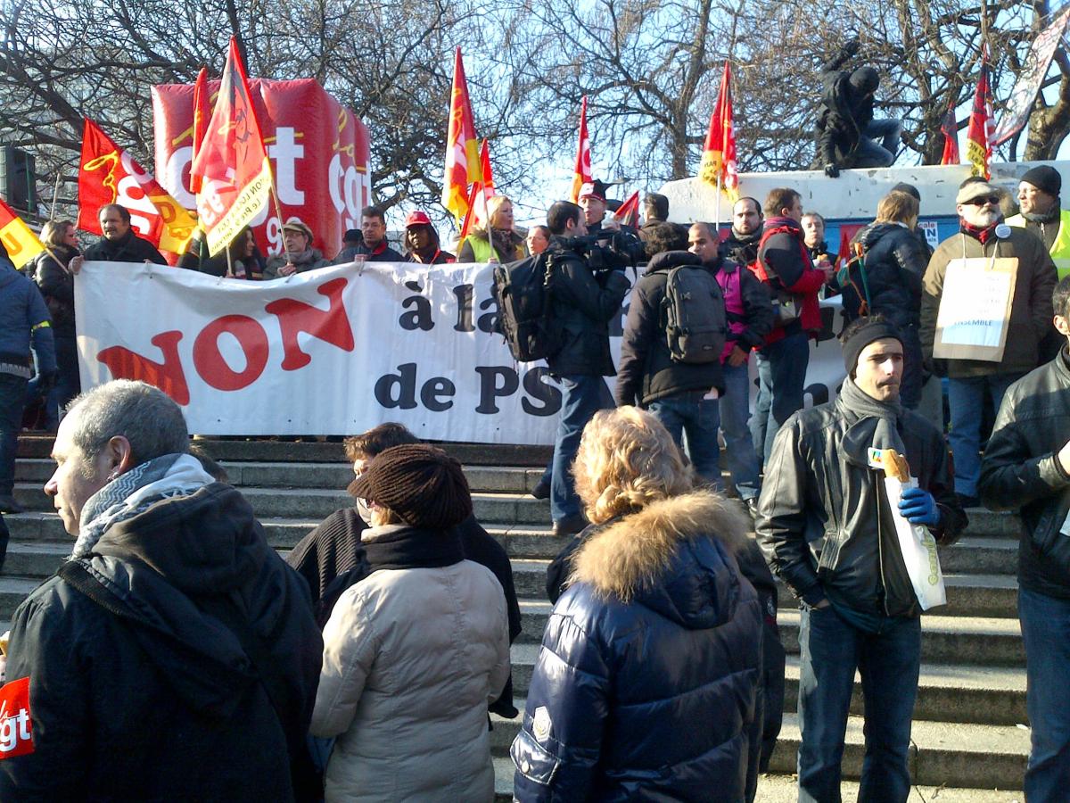 Marche pour l'emploi en Seine-Saint-Denis le 17 janvier 2013. Les salariés de PSA, en grève, en tête du cortège.