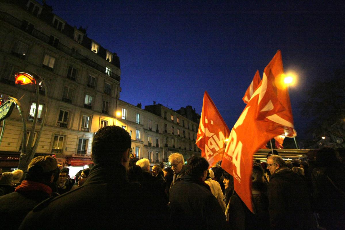 Rassemblement de protestation à Paris, le 7 février 2013, suite à l'assassinat de Chokri Belaïd en Tunisie.