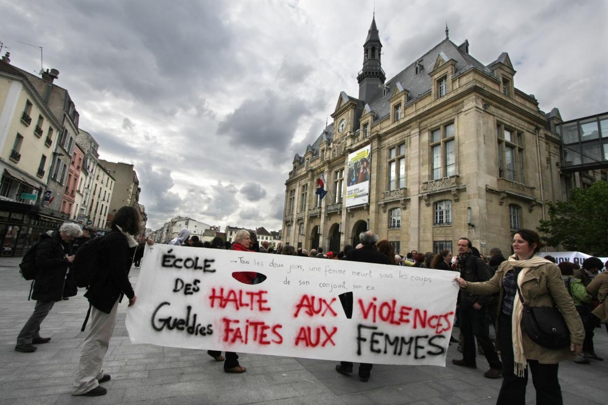 Le 7 mai 2012 à Saint-Denis, marche silencieuse en mémoire de Sofia, lycéenne au LP Bartholdi, assassinée le 12 avril par son copain. Les manifestants dénoncent les violences faites aux femmes en rappelant que, en France, tous les 2 jours, une femme est assassinée par son ex ou son conjoint.