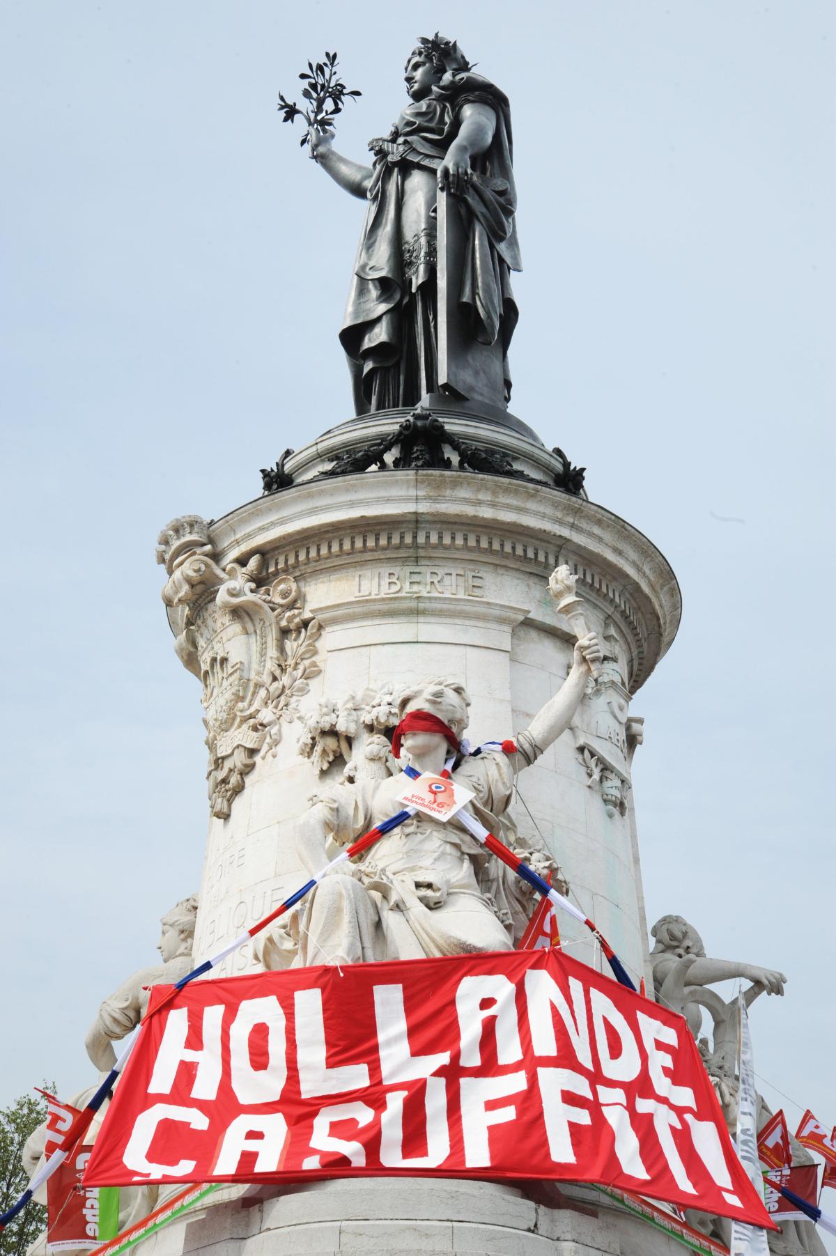 Place de la République banderole Hollande ça suffit!