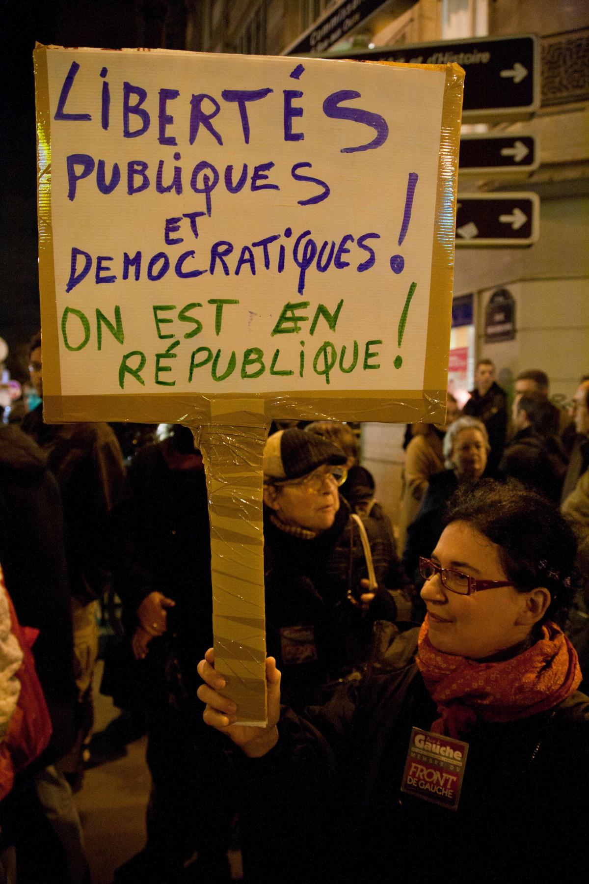 11 janvier 2012. Suite à l'interpellation et au tabassage de Denis Godard au motif qu'il sifflait l'internationale lors d'un contrôle d'identité, un rassemblement est organisé par Act Up, le NPA et le Front de Gauche devant le commissariat du 3ème arrondissement de Paris.