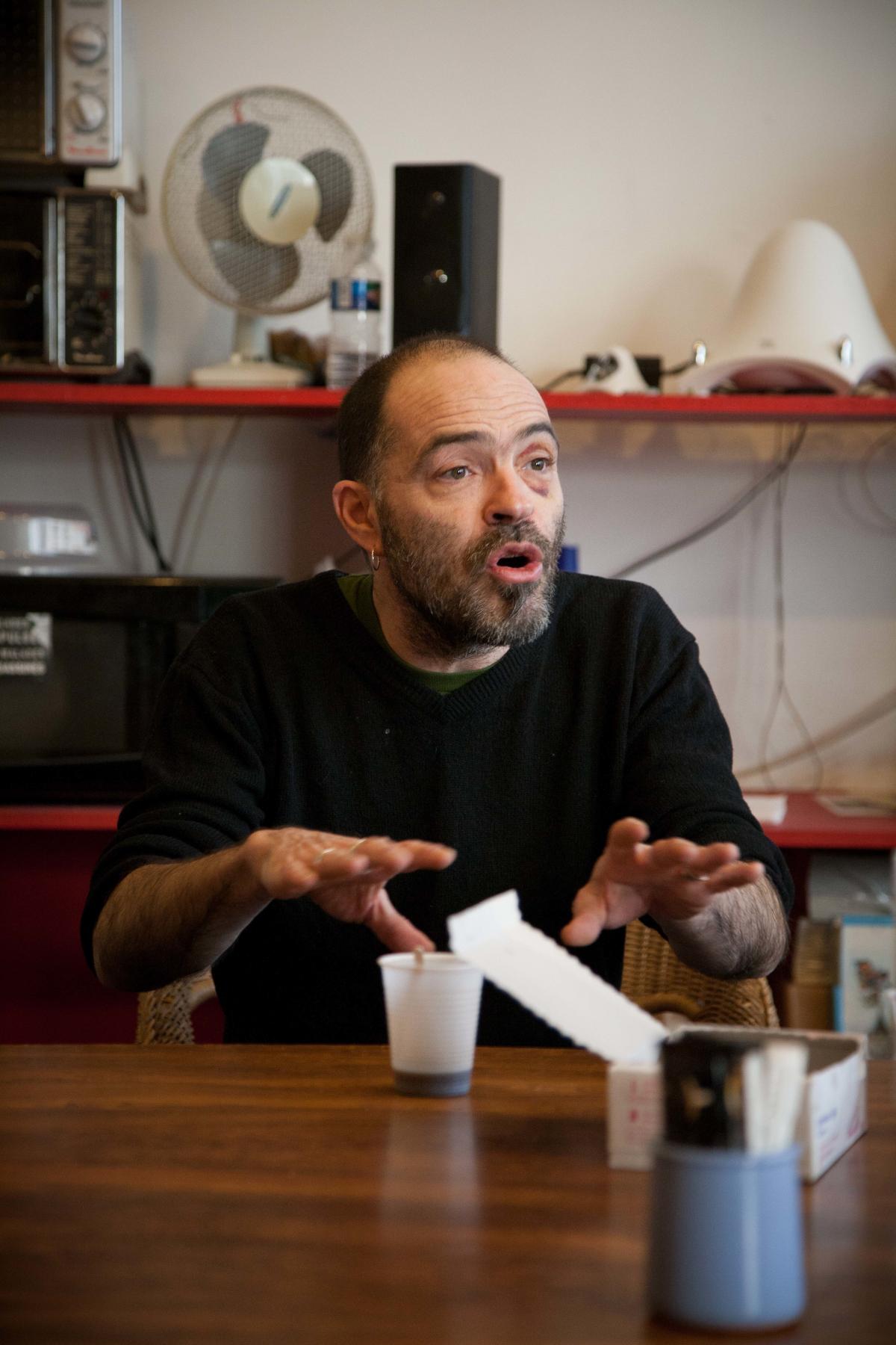 Paris, le 13 janvier 2012. Conférence de presse d'Act Up Paris, suite à l'interpellation musclée dont a été victime un de ses salariés, Denis Godard.