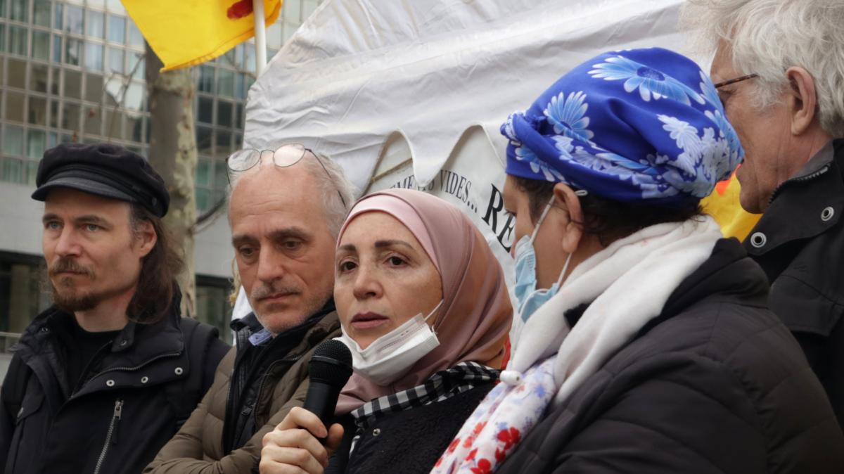 Dimanche 13 mars 2022, place de la Bastille à Paris, Campement organisé par le DAL pour les oublié.es du DALO. Philippe Poutou vient les soutenir.