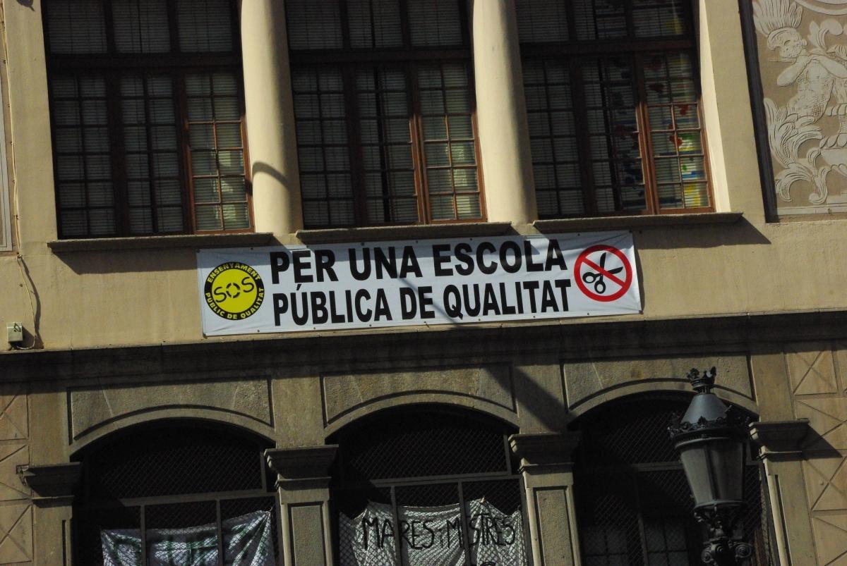 banderole sur une école de Pampelune contre les coupes budgétaires