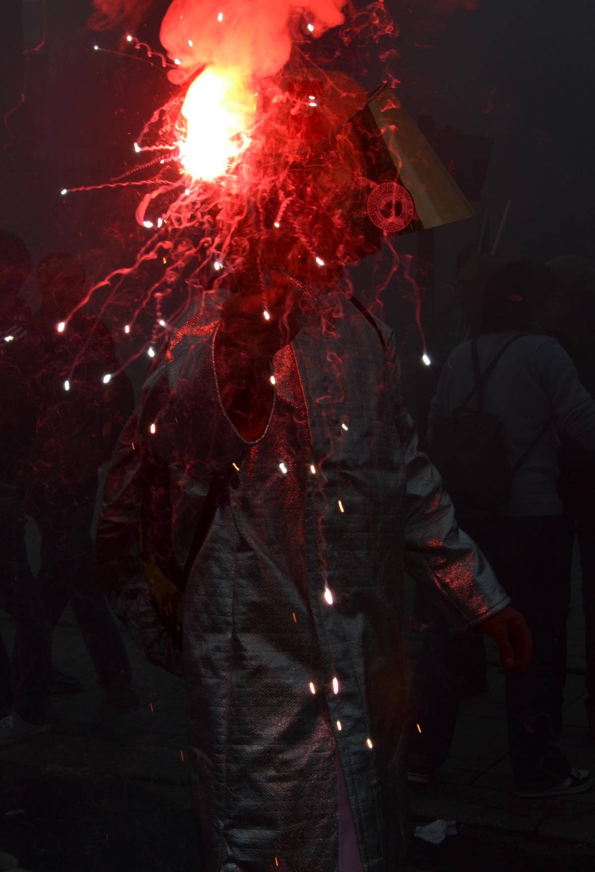 Un ouvrier metallurgiste d'Arcelor et sa fusée éclairante