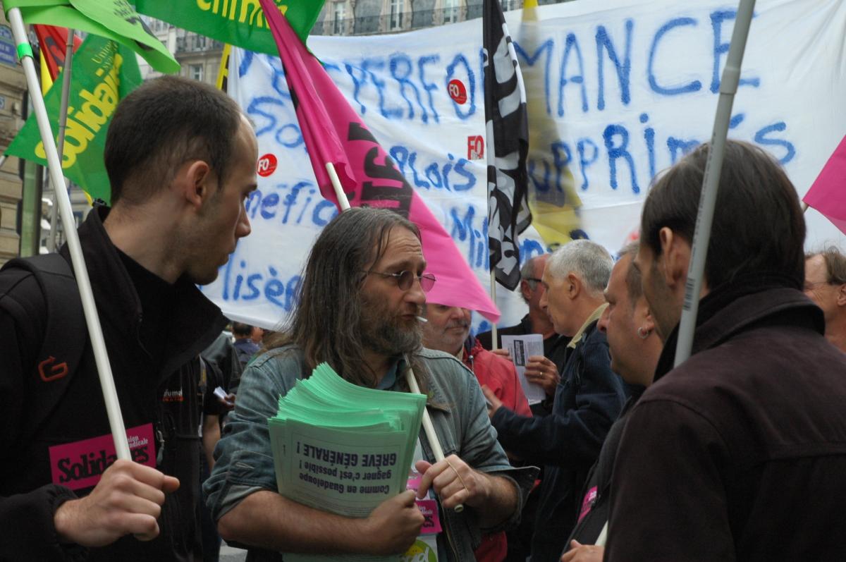 Soutien de Solidaires, Manif unitaire à l'appel des Fédérations Cgt de la Métallurgie et Chimie avec la participation des: FORD,NEW FABRIS,CONTI,GOODYEAR,MOLEX......... de l'Opéra à la Bourse de Paris.17-09 09.