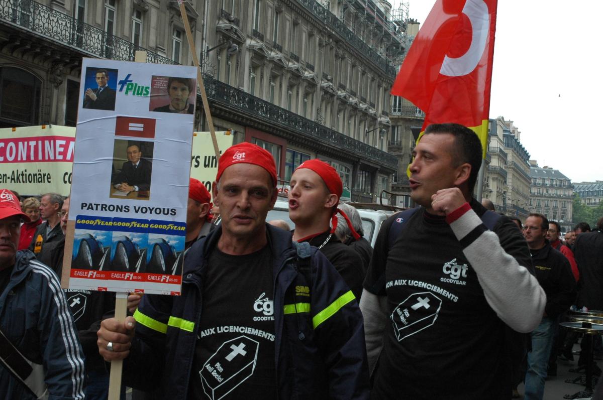 Manifestation unitaire à l'appel des Fédérations Cgt de la Métallurgie et Chimie avec la participation des: FORD,NEW FABRIS,CONTI,GOODYEAR,MOLEX......... de l'Opéra à la Bourse de Paris.17-09 09.