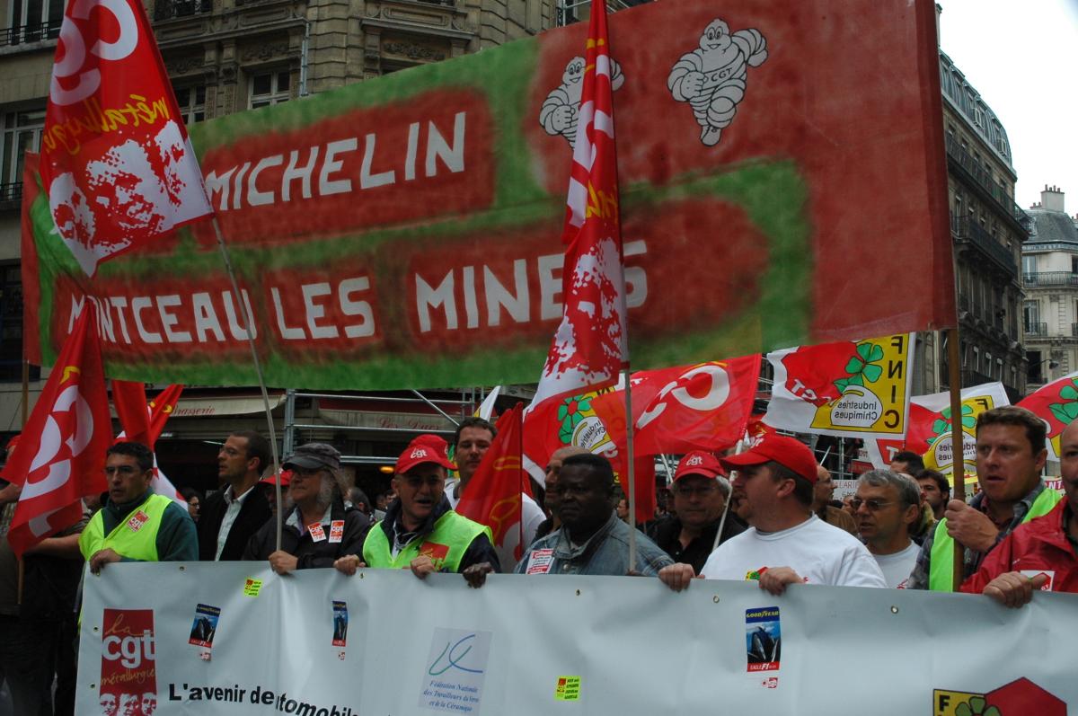 Manifestation unitaire à l'appel des Fédérations Cgt de la Métallurgie et Chimie avec la participation des: FORD,NEW FABRIS,CONTI,GOODYEAR,MOLEX......... de l'Opéra à la Bourse de Paris.17-09 09.