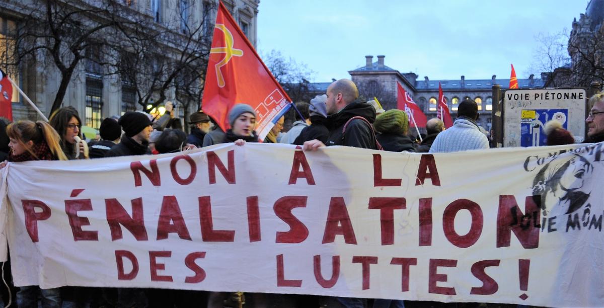 Banderole non à la pénalisation des Luttes! Compagnie Jolie Môme