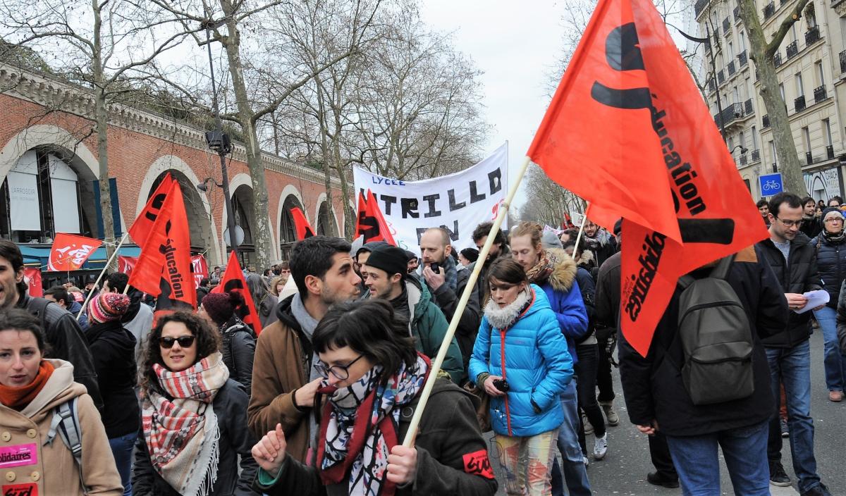 Paris le 22 mars 2018, manifestations des cheminots et des salariéEs de la fonction publique. Elles convergent à la Bastille