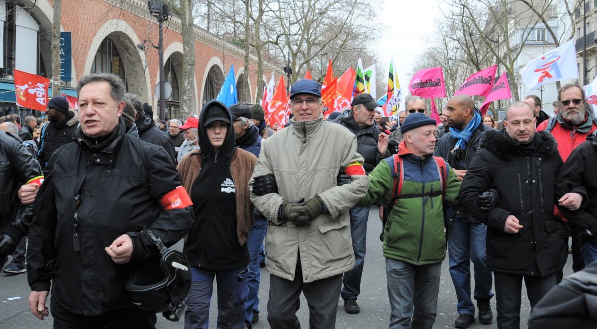 Paris le 22 mars 2018, manifestations des cheminots et des salariéEs de la fonction publique. Elles convergent à la Bastille