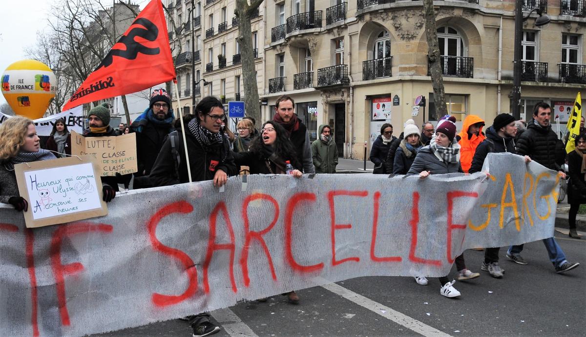 Paris le 22 mars 2018, manifestations des cheminots et des salariéEs de la fonction publique. Elles convergent à la Bastille