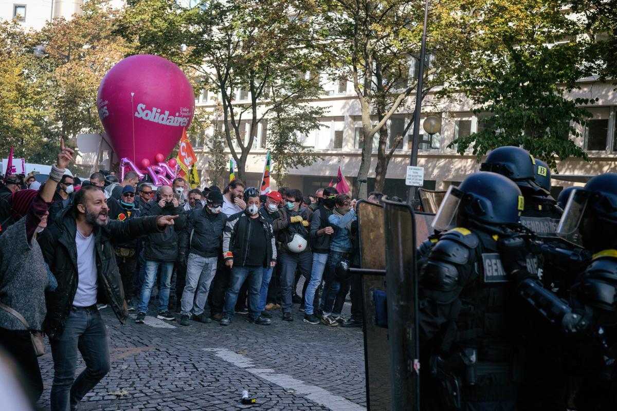 Le service d'ordre de la CGT et les CRS en tête à tête