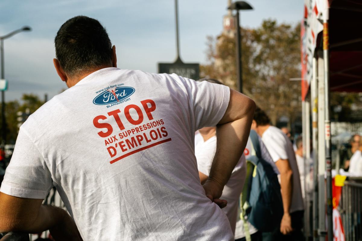 Rassemblement des travailleurs de Ford Blanquefort à Paris, devant le salon de l'Auto, contre la fermeture de leur usine.