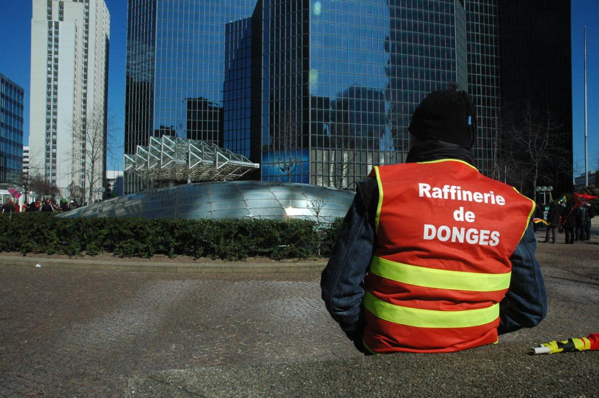Travailleur de la raffinerie de DONGES Loire Atlantique devant le siège de TOTAL.