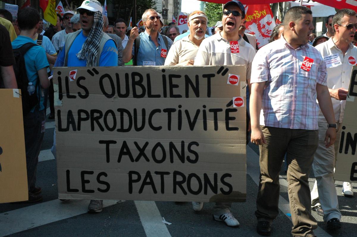 affiche des ouvriers Cgt de Peugot-Citroën,Ils oublient la Productivité Taxons les Patrons.
