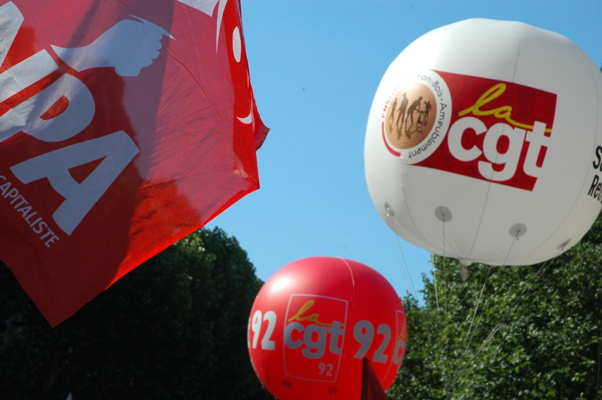 ballon blanc,Cgt fédération Construction Bois,et rouge Cgt Hauts de Seine 92.