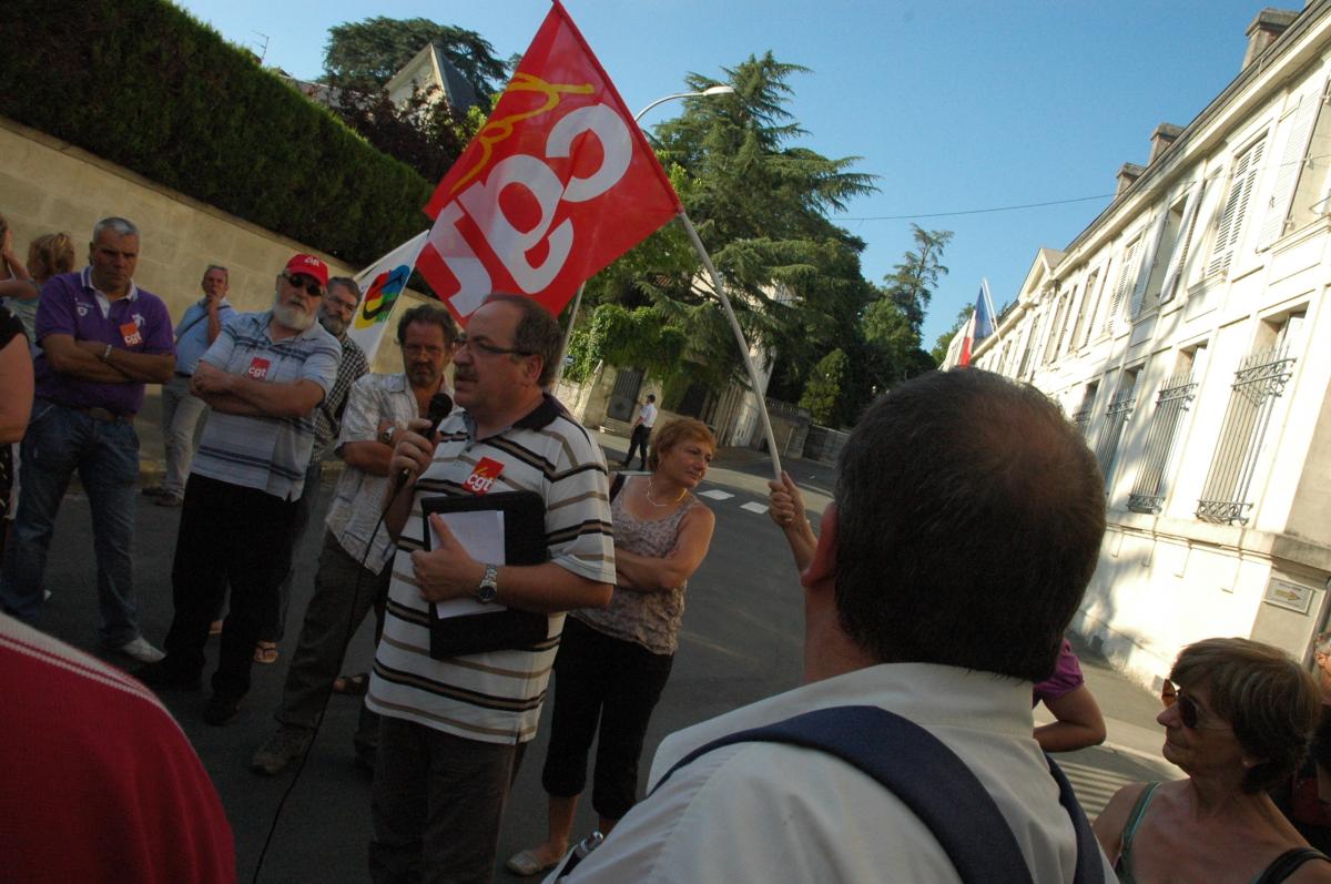 Périgueux préfecture de Dordogne 13 juillet 2010. Retraites dépôt de 3500 cartes pétitions supplémentaires (3474 déja déposées à Paris) l'intersyndicale est reçues par la Préfète.