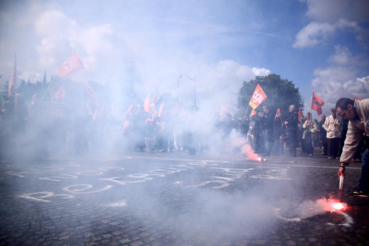 Paris, 15 septembre. Rassemblement devant l'Assemblée nationale pour les retraites.