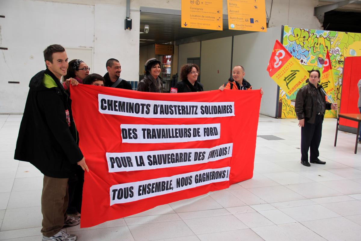 Les cheminots d'Austerlitz accueillent les salariés de Ford en lutte