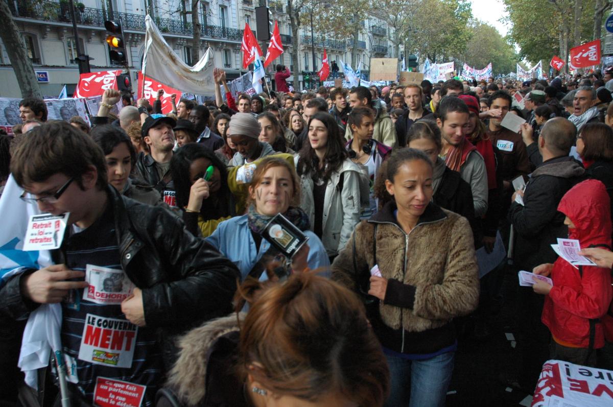 Samedi 16 octobre 2010 manifestation contre le projet de réforme des retraites par le gouvernement. Paris, 2 cortèges République Nation.