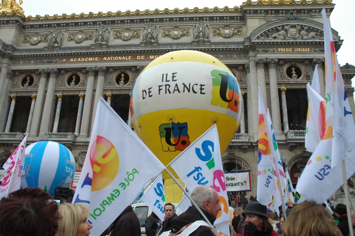 Drapeau Fsu ile de France devant l'Opera de Paris.