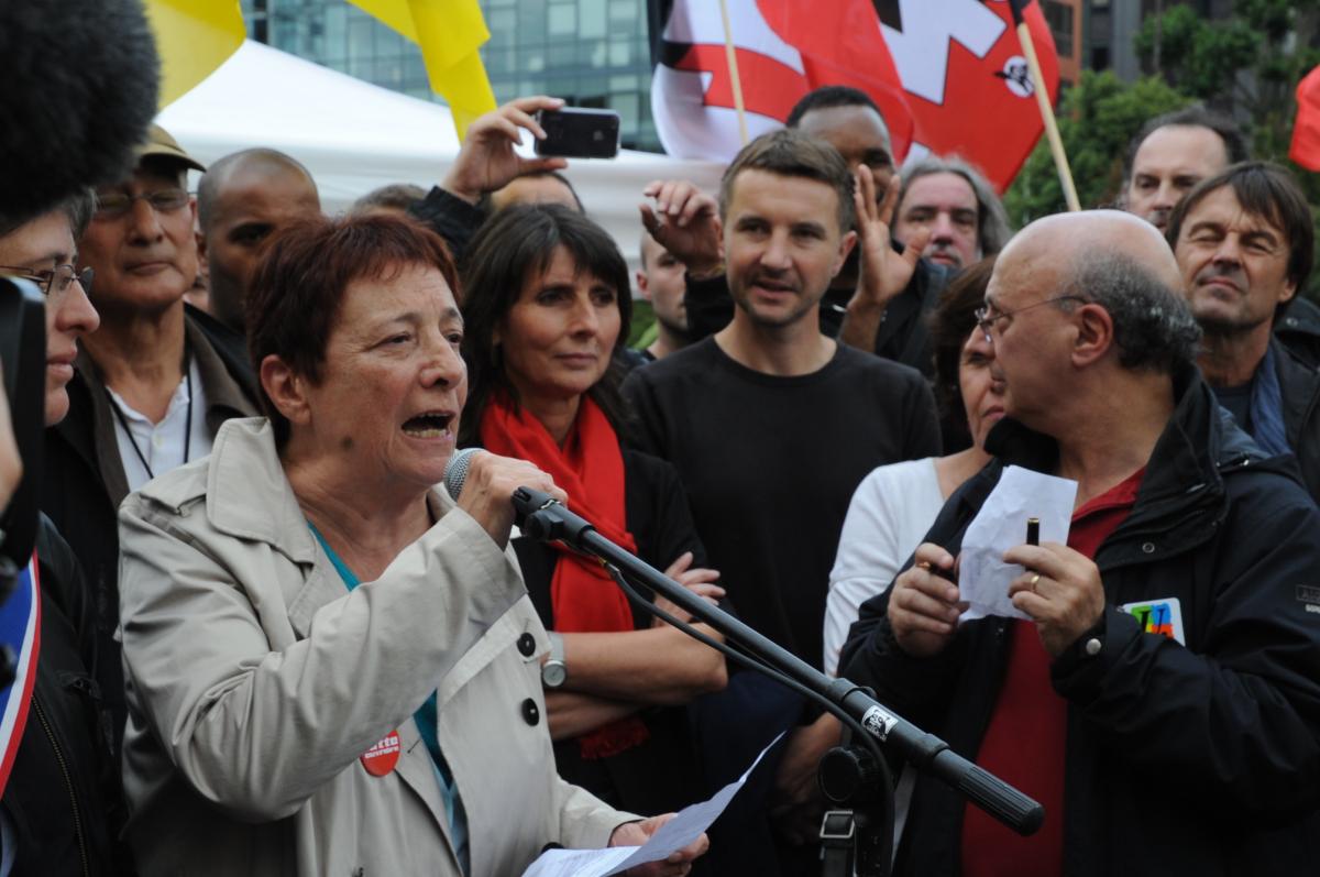 Arlette Laguiller LO et Christine Poupin pour le Npa en soutien au 16 postiers du 92 inculpés