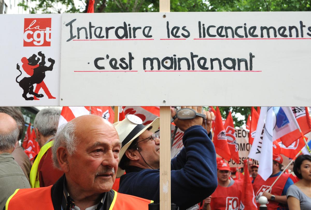 Militant Cgt avec pancarte interdire les licenciements c'est pour maintenant