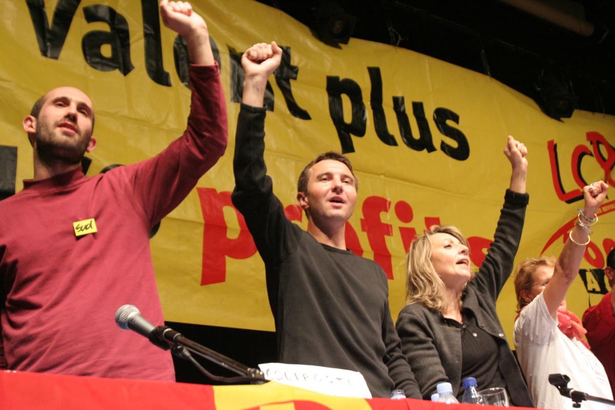 Tribune du meeting de lancement de la campagne présidentielle de la LCR, derrière la candidature d'Olivier Besancenot, jeudi 30 novembre 2006 à la Mutualité. Plus de 1000 personnes présentes Paris/2006/11/30/JMB