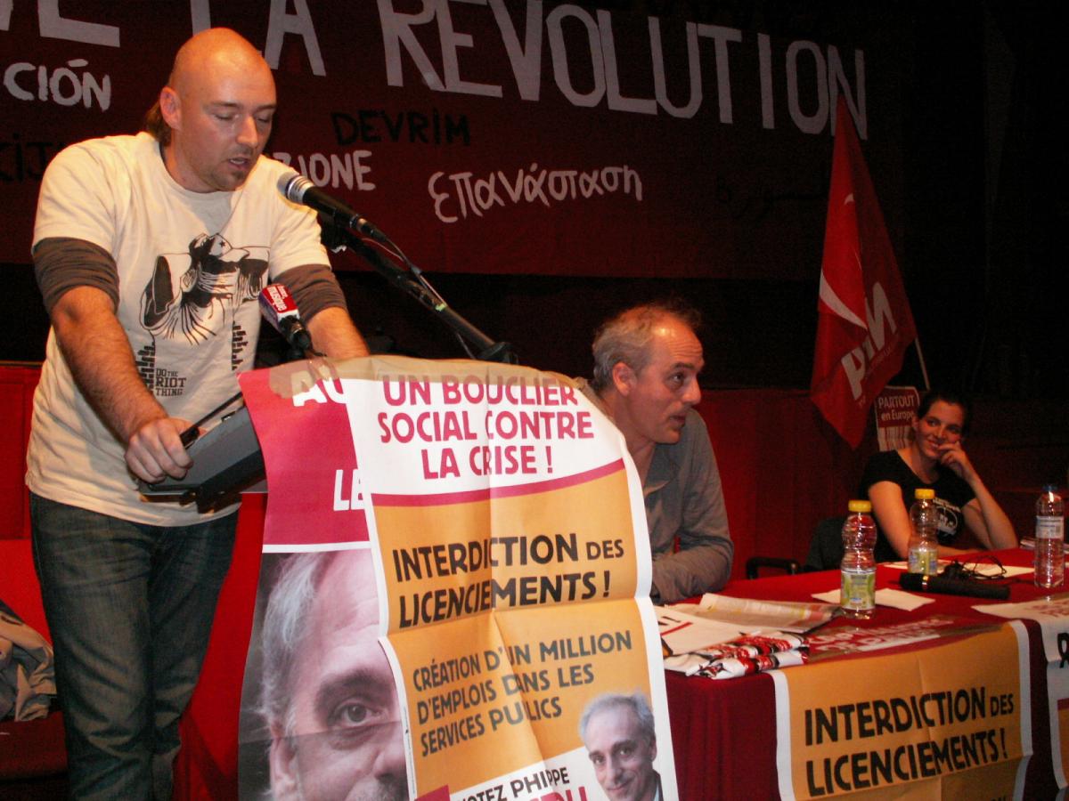 Marseille le 18.4.2012. théâtre MAZENO : meeting du PHILIPPE POUTOU candidat au élection présidentielle 2012