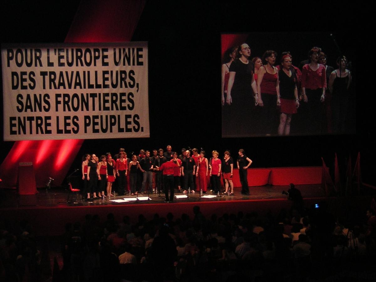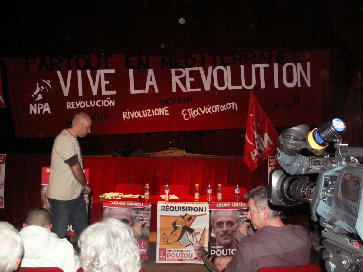 Marseille le 18.4.2012. théâtre MAZENO : meeting du PHILIPPE POUTOU candidat au élection présidentielle 2012