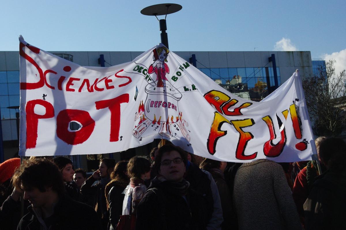 manifestation à Rennes le 5 février contre la masterisation et la réforme d statut d'enseignant chercheur et contre la LRU , 5 000 personne dans la rue