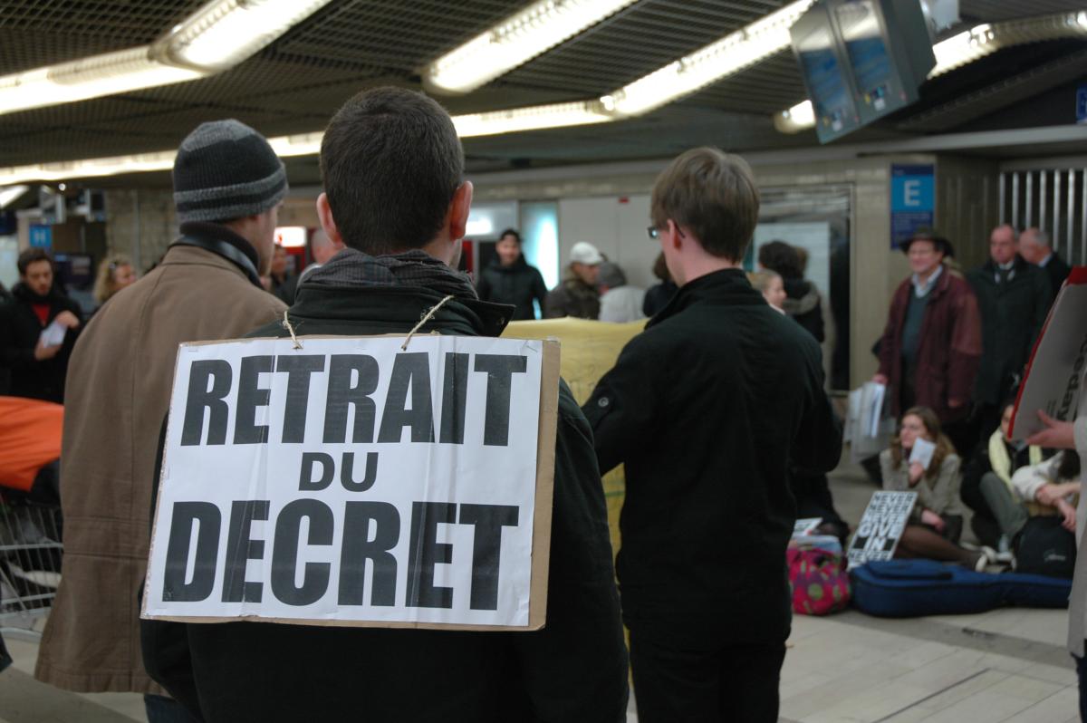 Paris le 10 mars 2009. Etudiant en grève Avec une pancarte