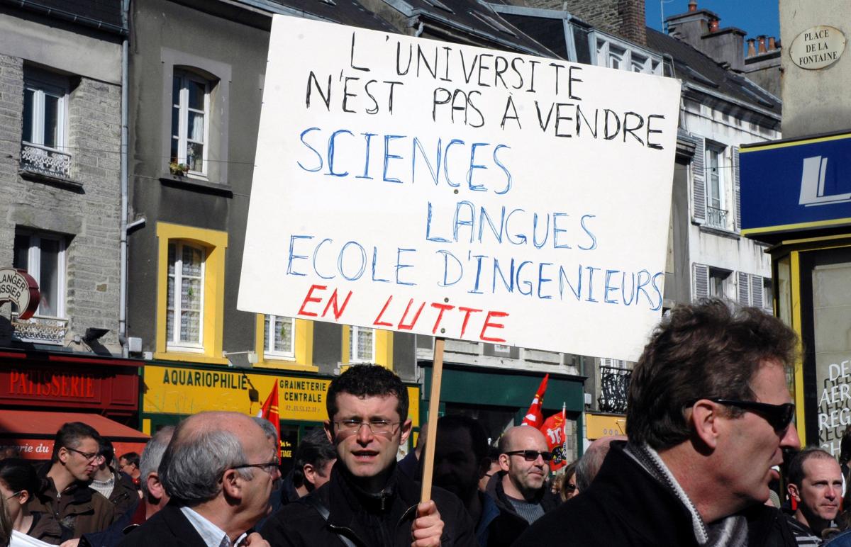 Cherbourg le 19 mars 2009. 18 000 manifestants se sont mobilsé à l'appel de l'intersyndicale. Pancarte