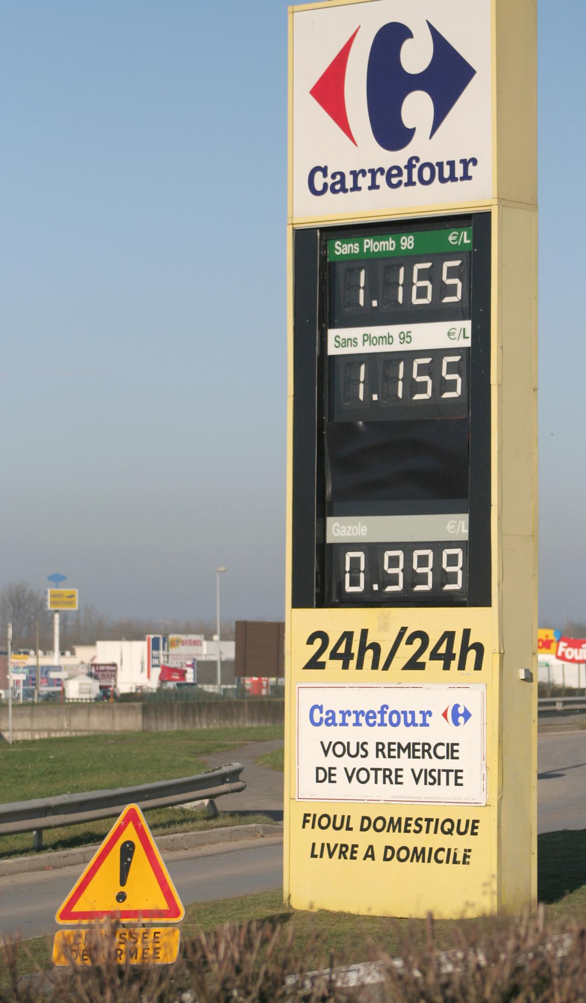 borne affichant les prix de l'essence d'un supermarché