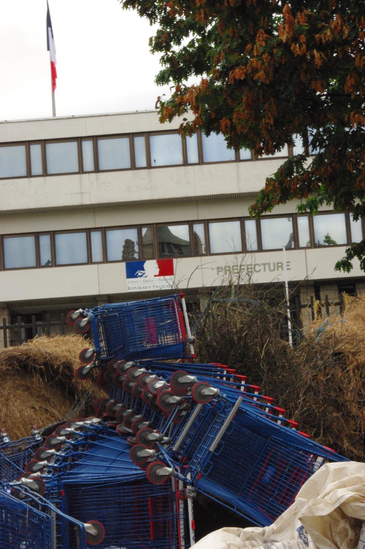 tas de chariots devant la pref des cotes d'armor