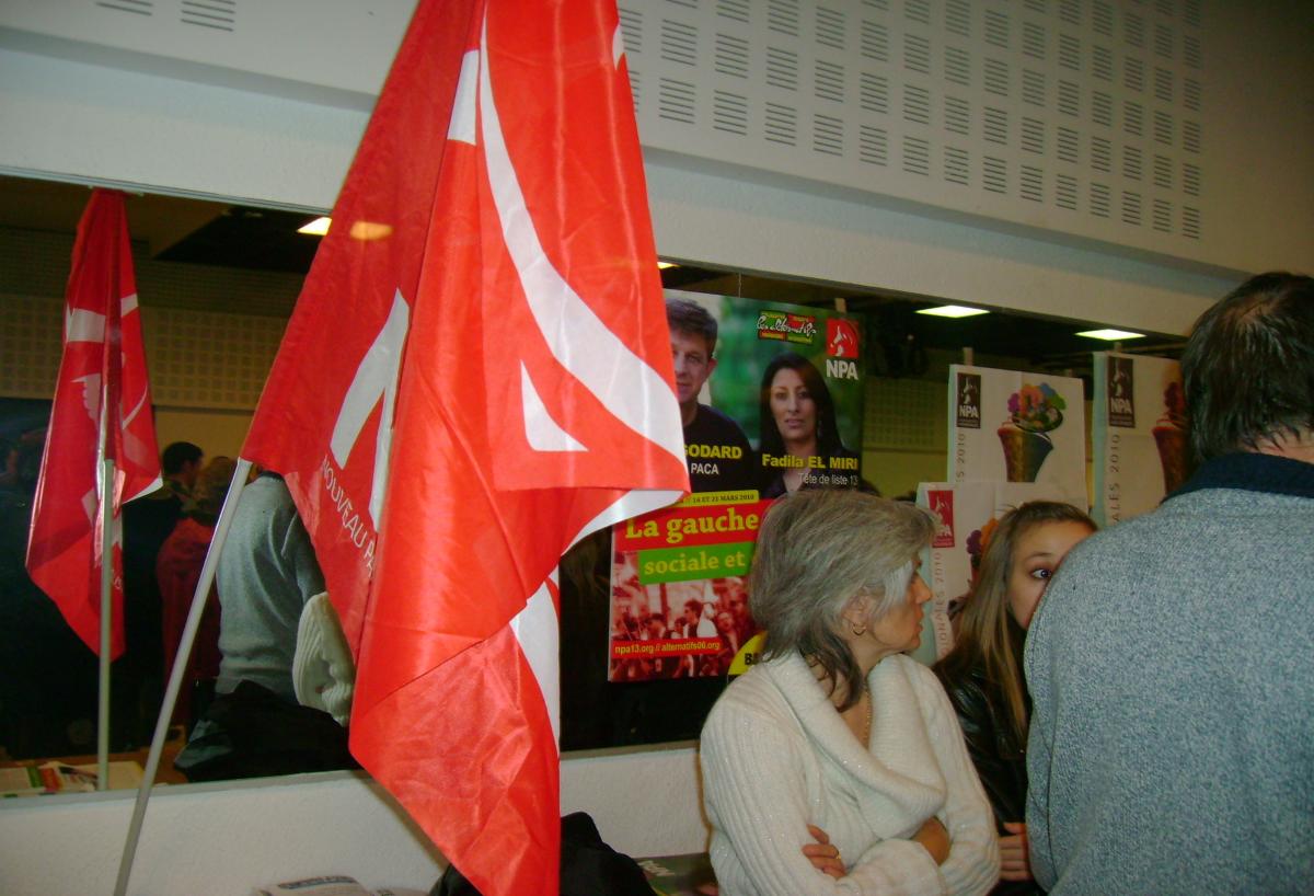 drapeau NPA avec les affiches de la compagne dans la région PACA