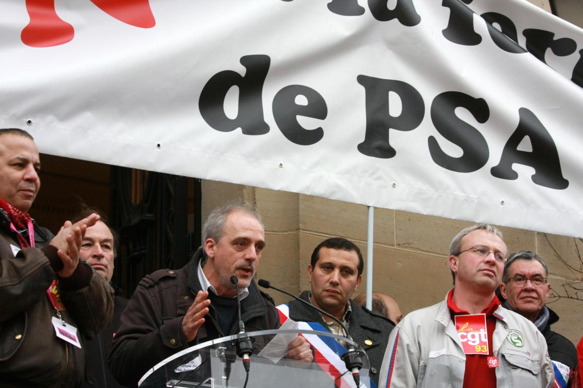 Manifestation nationale des salariés de différents sites de PSA, le 18 fevrier 2011, à Aulnay, contre la fermeture annoncée de l'usine d'Aulnay.