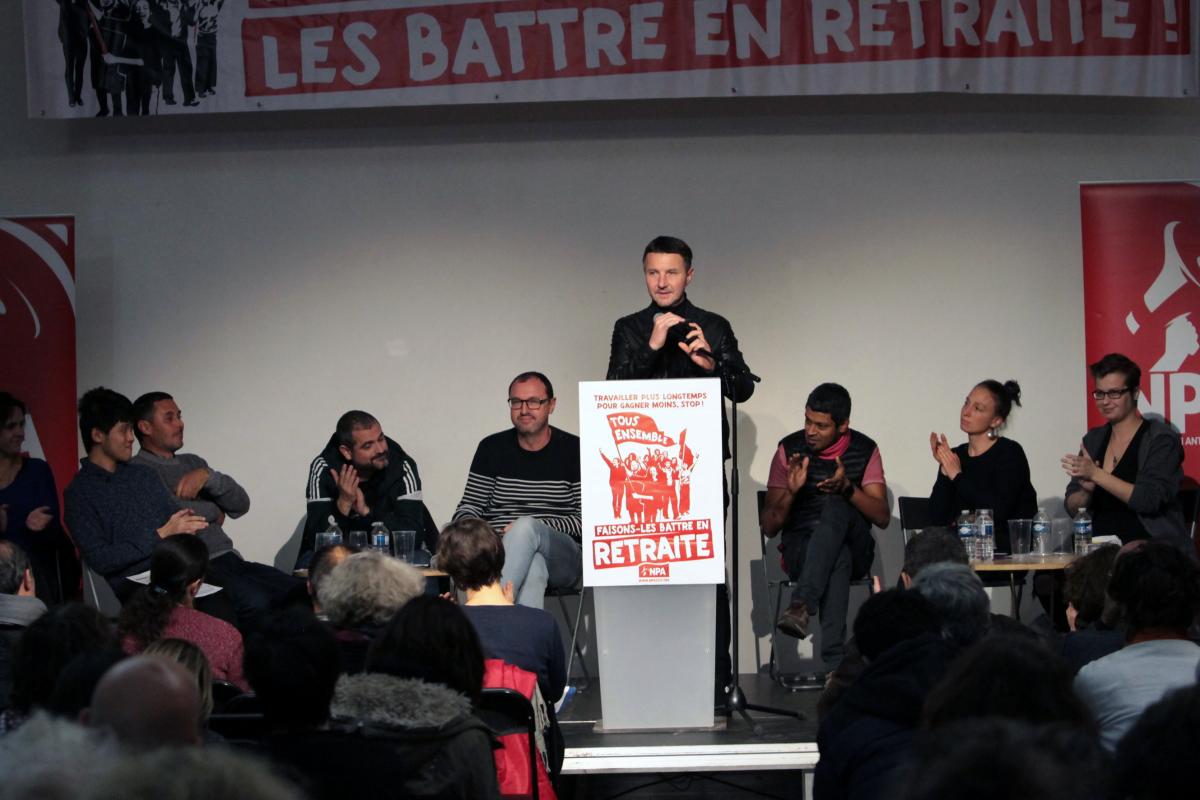 Paris, à la Bellevilloise le 16 décembre 2019, meeting du NPA en pleine mobilisation contre le projet de loi sur les retraites.