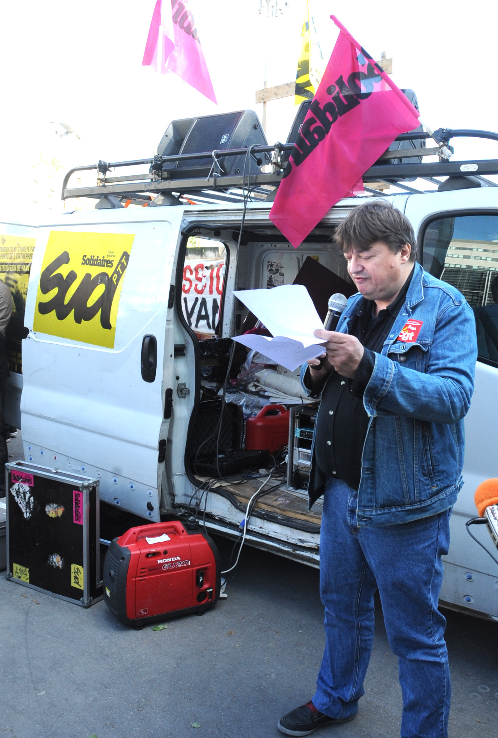 Télécharger la photo “Intervention de la Fapt-Cgt au rassemblement devant le Ministère des finances pour demander la réintégration de Yann Le Merrer”