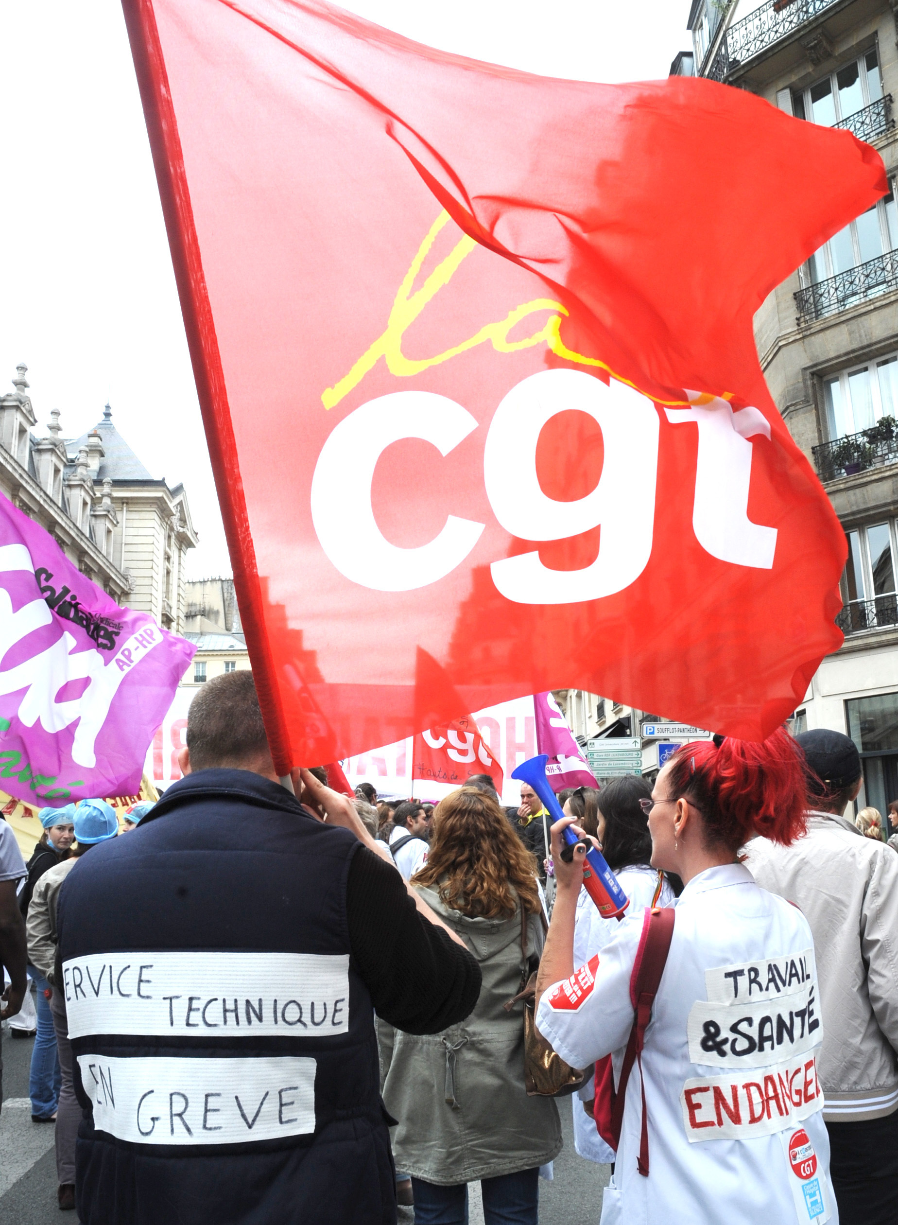 Télécharger la photo “Salariés de l'AP-HP en grêve contre le projet de Martin Hirsch de remise en cause des RTT devant le Panthéon”