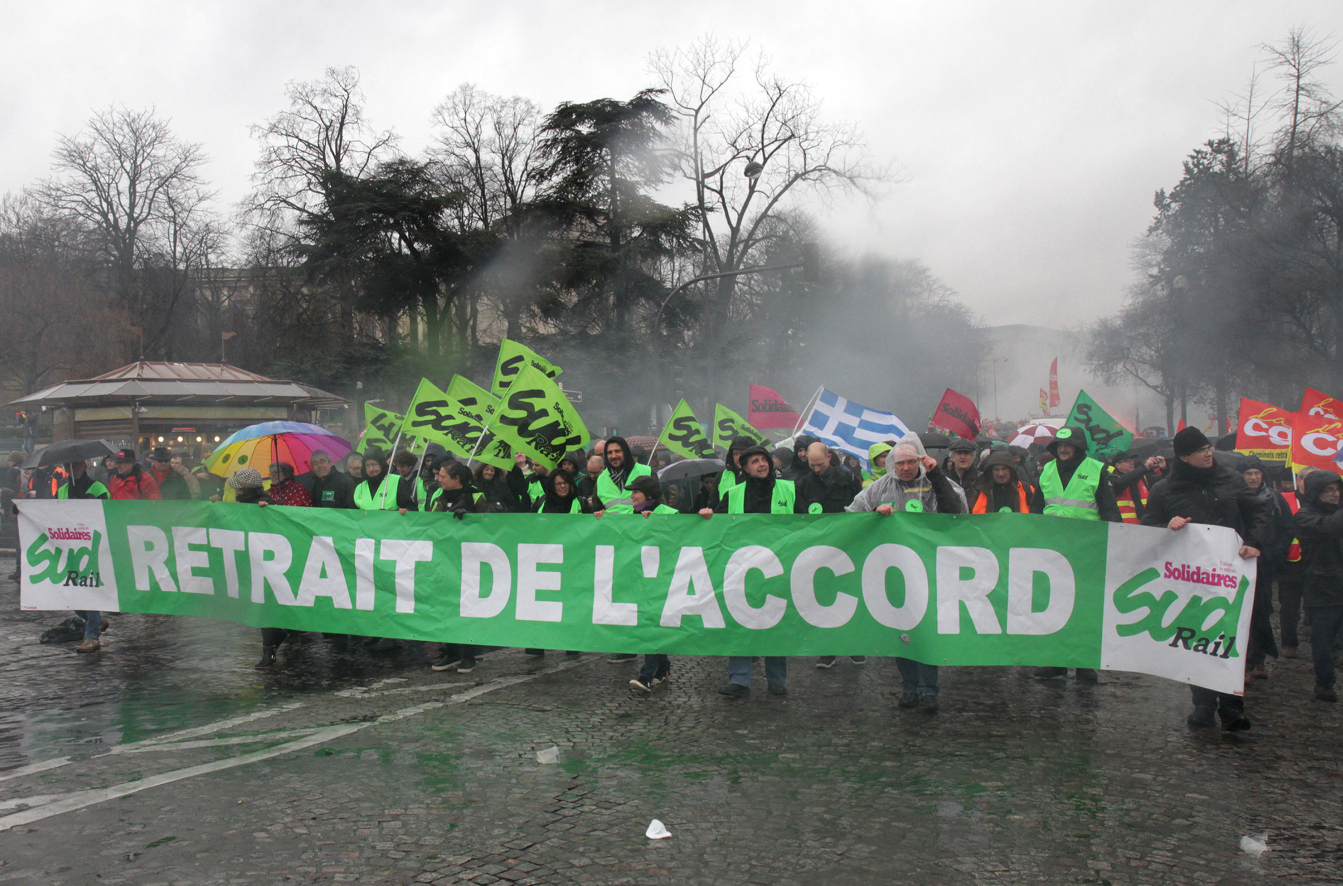 Télécharger la photo “Banderole Sud Rail, retrait de l'accord”