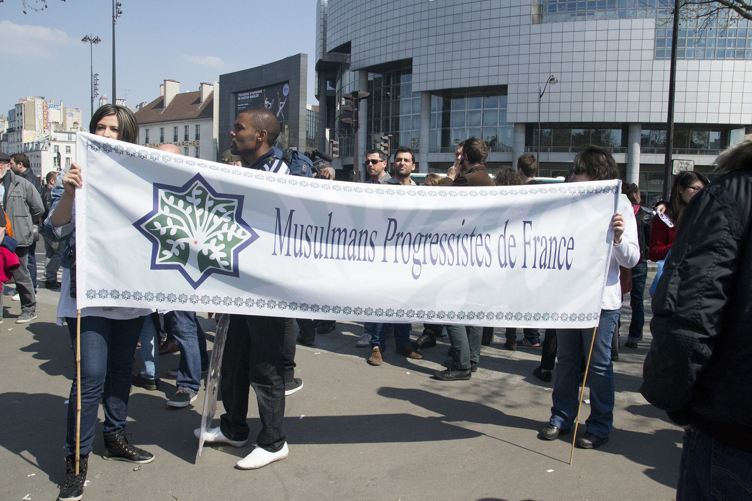 Télécharger la photo “Rassemblement pour l'égalité des droits - Banderole des Musulmans progressistes de France”