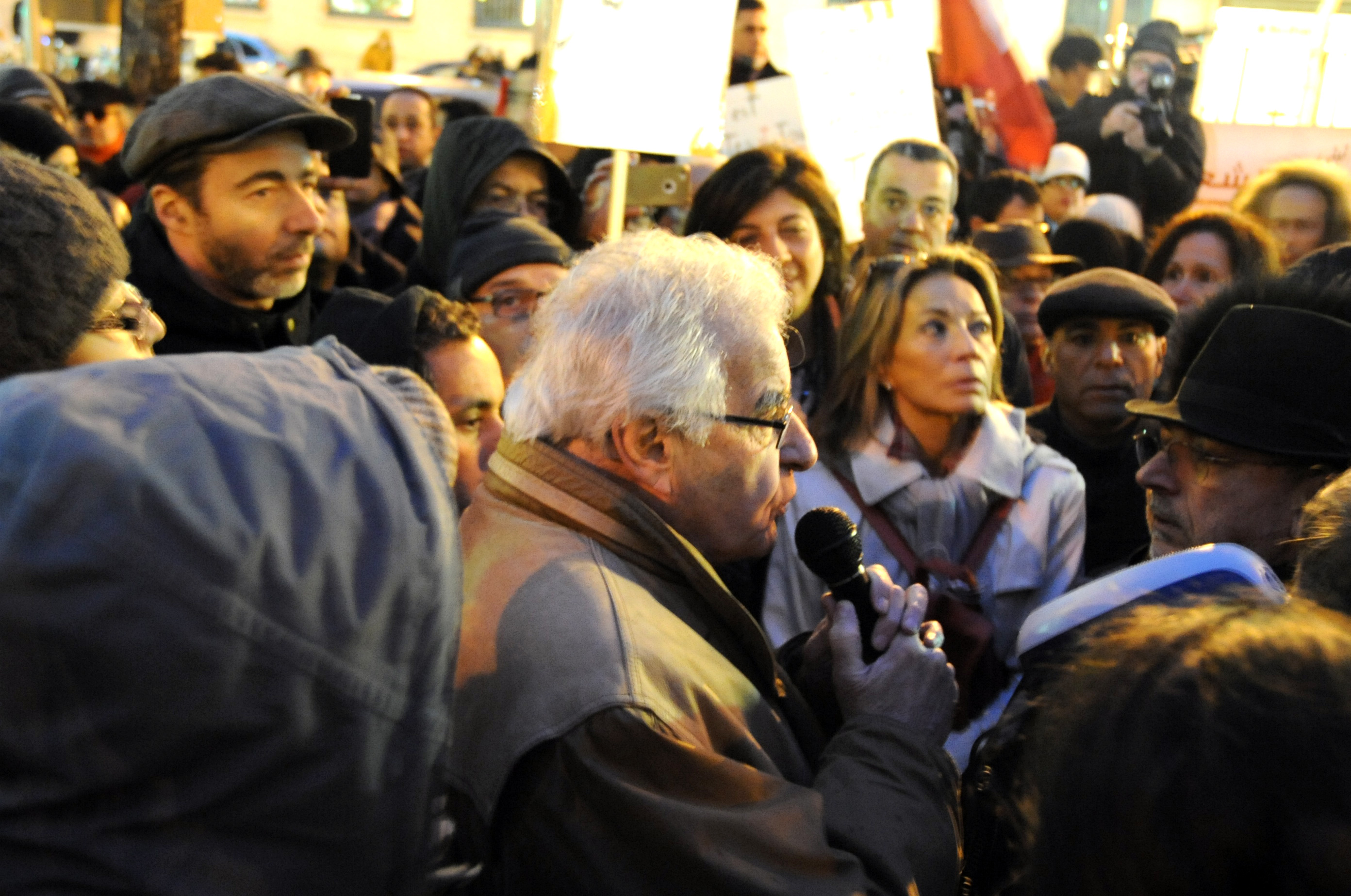 Télécharger la photo “Prise de parole d'Alain Krivine représentant le Npa jour de lassassinat de CHOKRI BELAÏD du PPDU (Watad)”