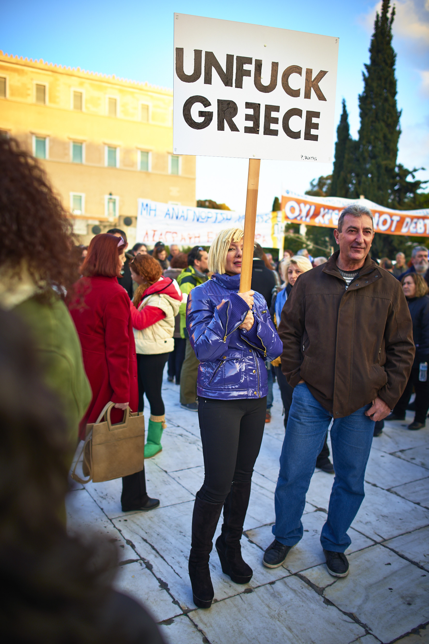Télécharger la photo “Banderole, place Syntagma, Athènes, 15 février 2015”