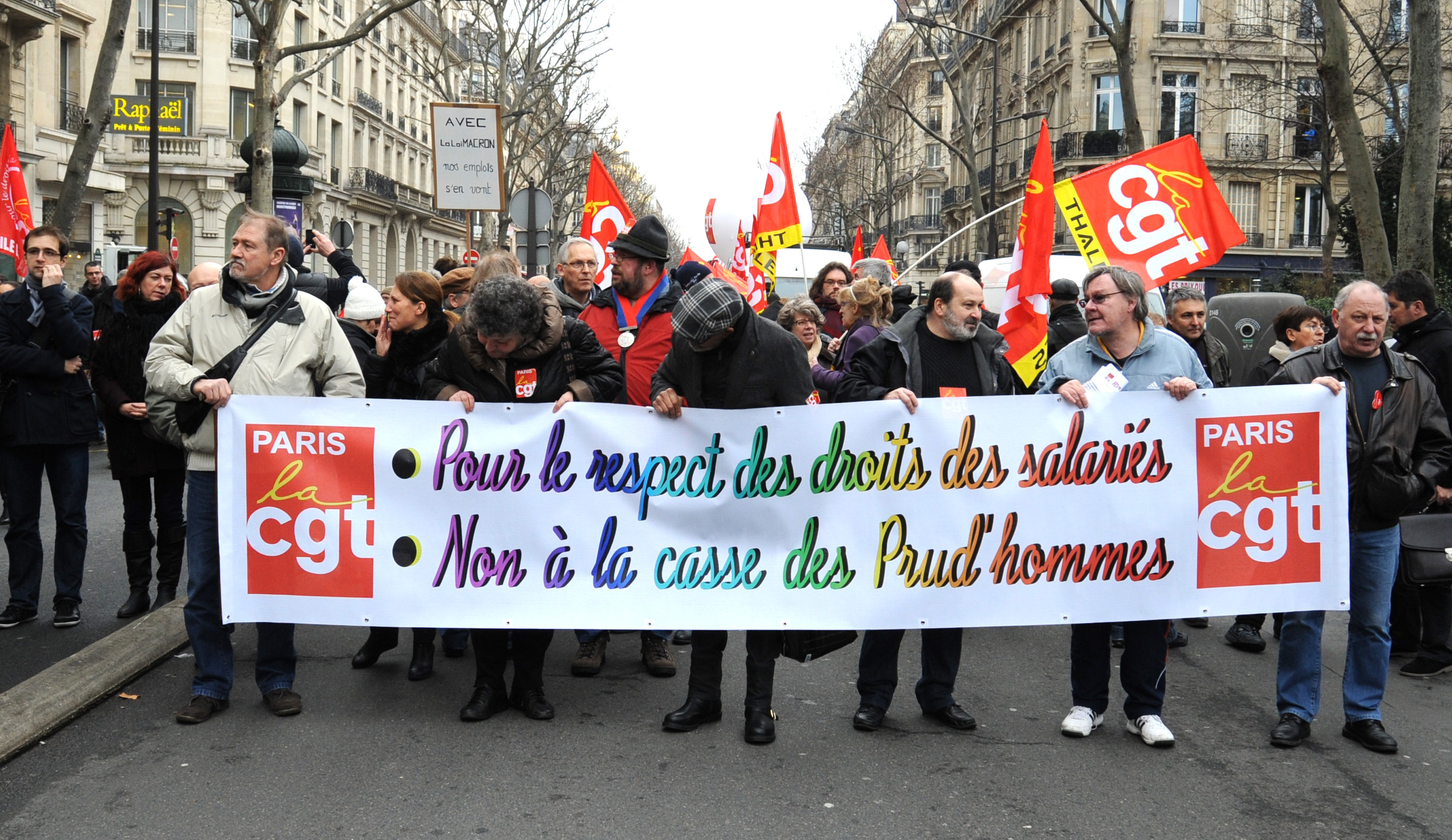 Télécharger la photo “Banderole Pour le respect des droits des salariés Non à la casse des Prud'hommes Cgt Paris”